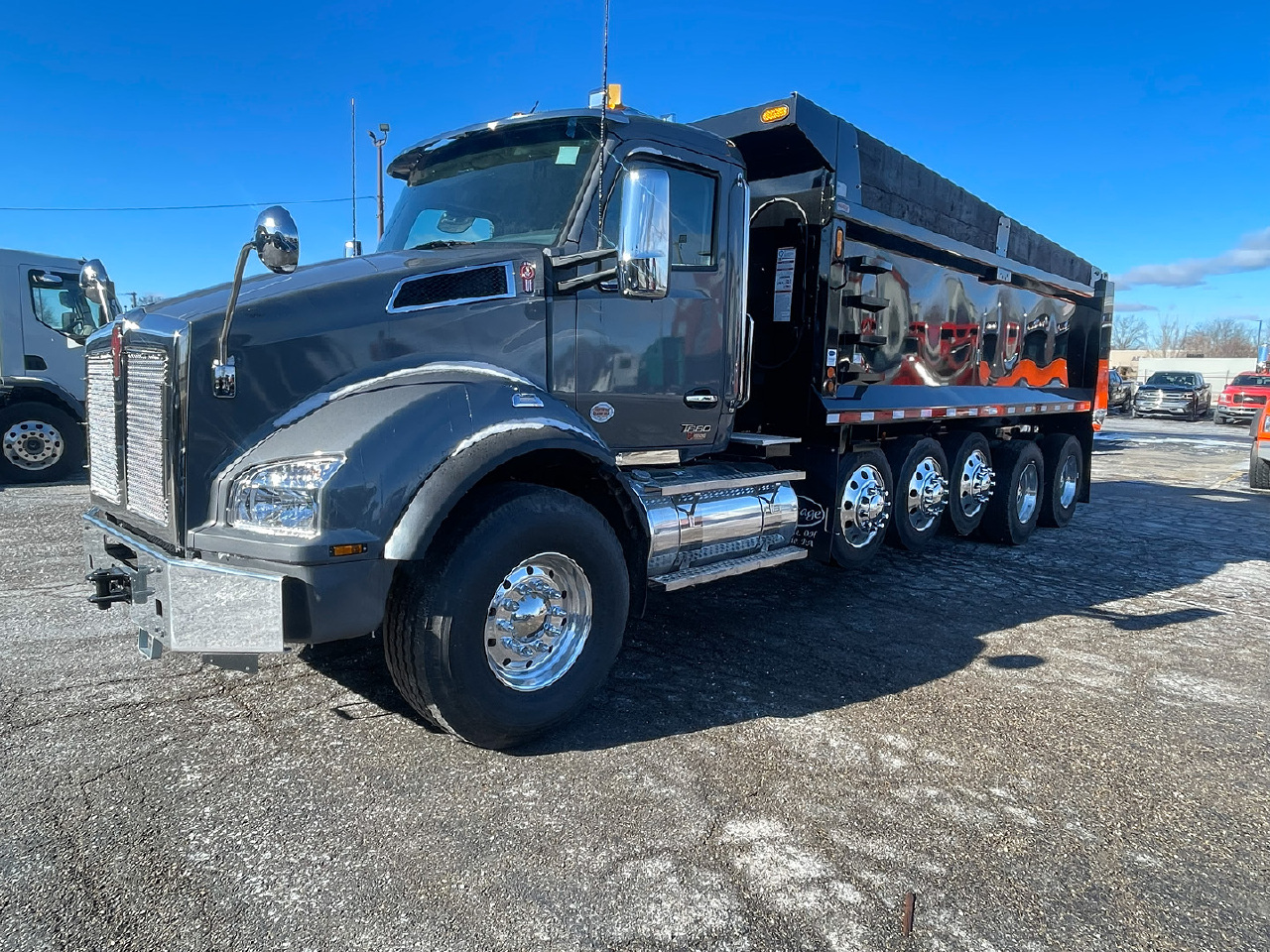 Built to perform in demanding vocational environments, this new 2026 Kenworth T880 6-axle dump truck delivers the strength, balance, and durability required for heavy construction and aggregate operations. Designed for consistent performance under load, this T880 provides the reliability operators need for long days on the job. This truck is powered by a PACCAR MX-13 engine rated at 510 horsepower, paired with an Allison 4500RDS automatic transmission. Together, this drivetrain offers smooth power delivery and dependable operation, making it well suited for stop-and-go work and heavy hauling conditions commonly found on construction sites. The chassis is configured with a 20,000-lb front axle, 46,000-lb rear axles, and a 4.10 rear ratio, giving this 6-axle dump truck the capability to manage demanding weight requirements with confidence. A Haulmaax suspension enhances stability and durability, while air brakes provide reliable stopping power in challenging work environments. With a 276-inch wheelbase and 208-inch cab-to-axle, this truck offers a solid foundation that balances payload capacity with maneuverability. Equipped with a steel dump body and rated at 66,000-lb GVW, this T880 is a true heavy-duty vocational workhorse. Inside the cab, drivers benefit from air conditioning, heated mirrors, and a practical workspace designed for comfort and productivity. Finished in a black exterior with slate gray interior, this truck delivers a clean, professional appearance and is ready to go to work.